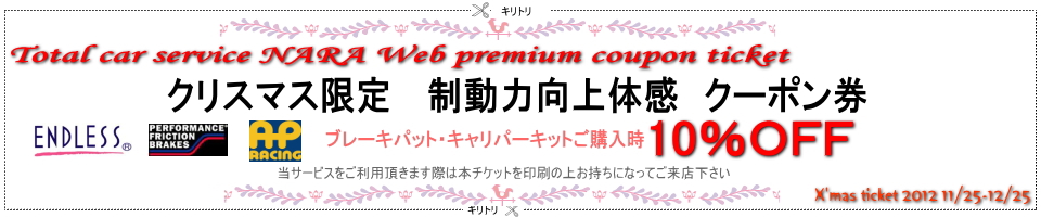 セントラルサーキットNA最速レコード1分24秒を記録し、BMWCUP、EUROCUP等のレースにおいて数々の優勝成績を収めて来た当社デモカーBMW E92M3のタイムアップに貢献して来たブレーキシステムのアップデート製品を、当社の実走テストを行った上で絶対的な信頼を基におススメさせて頂きます3メーカーとして豊富な車種専用ブレーキシステム・ブレーキパットの設定があるエンドレス様、国際レースシーンで鍛えられたAPレーシング様、当社で最もおススメさせて頂く絶対的なブレーキパットを製造するPFC様の製品をクリスマス限定でのキャンペーンをさせて頂きます