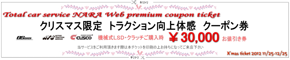 特にスポーツ走行において駆動輪のトラクション性能を向上させる事の出来る駆動系パーツをピックアップさせて頂きました。機械式LSDではTCD等ストリートユースでも優れた精度と耐久性、メンテナンス性で定評のあるOS技研様の製品及び、新素材系カーボンLSD、カーボンクラッチをラインナップするATS様,豊富なラインナップで信頼と実績に定評のあるクスコ様の製品をクリスマス限定価格でご奉仕させて頂きます
