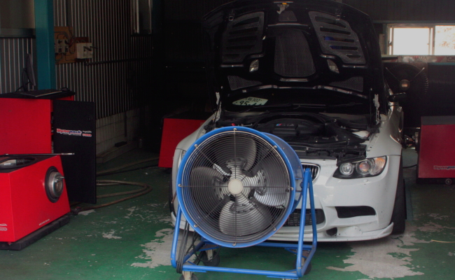 エンジンの出力を上げる前に、油温・水温の上昇による出力ダウンを最大限に防ぐ事がストック状態のポテンシャルを発揮する上では必要不可欠です。水温対策に効果的なのが油温の適正化です。オイルクーラー・オイルサーモ・導風板の三点により夏場のサーキット走行も可能にしています。 |