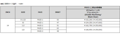 | ・センターロック車は割増料金 |